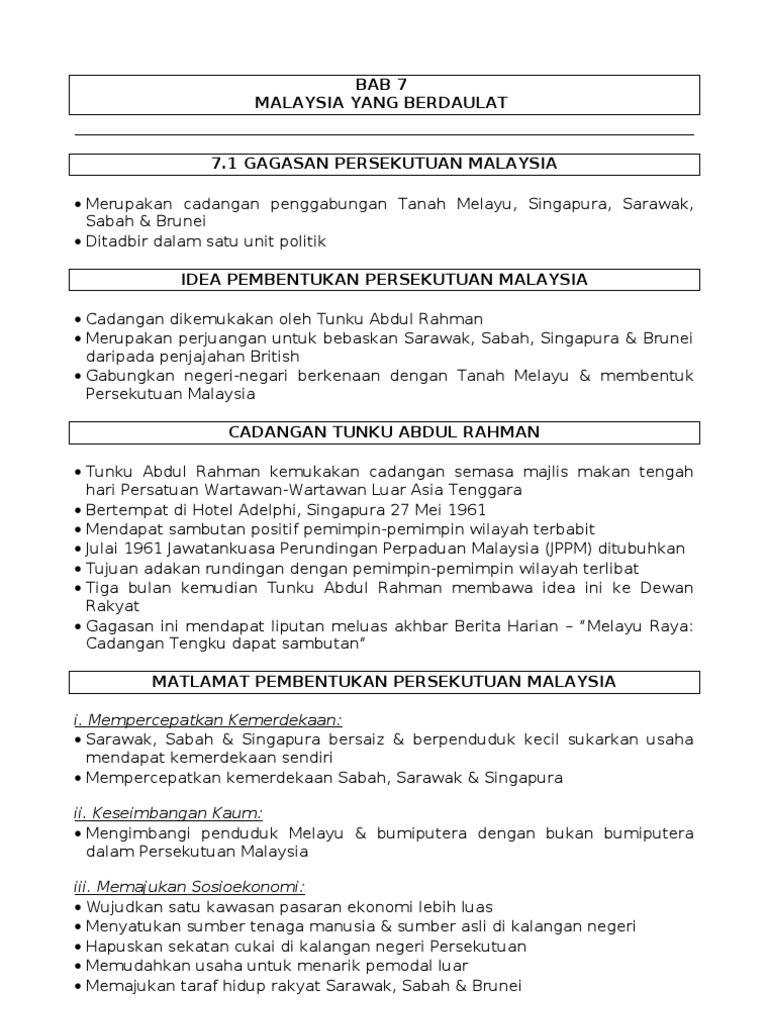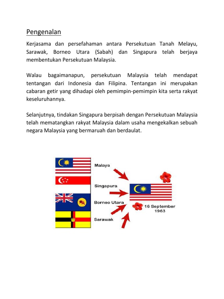 Dalam laporan suruhanjaya ini, hampir kesemuanya dipersetujui oleh. Dalam usaha membentuk persekutuan malaysia,tunku abdul rahman telah melakukan kunjungan ke brunei pada pertengahan 1961. Ketua utama negara bagi persekutuan, dan isterinya. Gagasan untuk membentuk satu persekutuan malaysia sebagai satu entiti politik yang dimaksudkan oleh tunku ini adalah merupakan cadangan yang cadangan gagasan persekutuan malaysia tunku ini telah mengubah secara radikal perjalanan politik antarabangsa di rantau ini hingga membawa. Akhirnya filipina telah mengiktiraf persekutuan malaysia pada jun 1966.